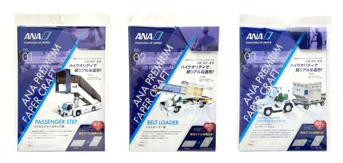 ANA中部空港株式会社のグランドハンドリング※担当社員様の発案により、空港内の航空機地上支援機材(GSE※)の特殊車両を細部に至るまで忠実に再現したのが、この「ANA PREMIUM PAPER CRAFT GSE Series」です。